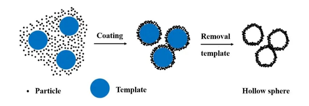模板法是制備空心微球的一類常用方法[19,20]。模板法是在顆粒的制備過程中,采用液滴、氣腔和膠粒等模板作為顆粒形成的基底,通過吸附、沉淀、界面反應(yīng)等過程,在基底表面形成所需要的顆粒,再通過燒結(jié)氧化、化學(xué)腐蝕、氧化還原等過程去除模板,從而得到空心陶瓷微球[21]。模板法制備空心微球示意圖如圖1[21]所示。模板法具有原理簡單、重復(fù)率高以及性能穩(wěn)定等特點(diǎn),近年來,越來越多的研究人員采用模板法進(jìn)行二氧化鋯空心微球的制備[11]。